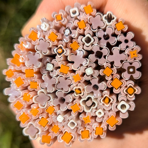 Dusty Lilac and Tangerine Fusible Glass Flowers Murrine Sticks COE 90 MSFL-032717