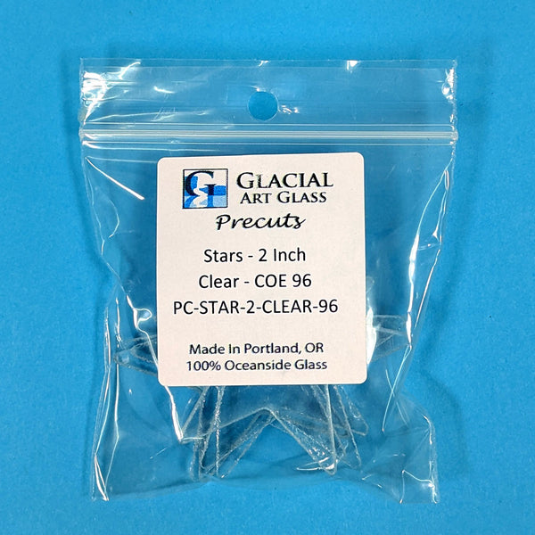 Our clear precut glass stars are made from 3mm thick Oceanside glass and are 2" tall.