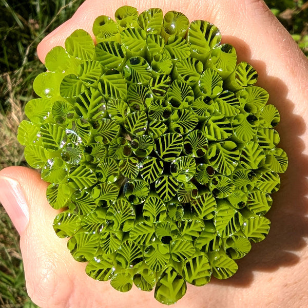 Glacial Art Glass Murrine Sticks are perfect for any project that needs a splash of lush greenery! Whether you're decorating a functional piece or adding detail to your next art glass jewelry, ornament, or dish, these lively leaves bring instant charm and texture. Great for kiln work, mosaics, and mixed media creations alike!